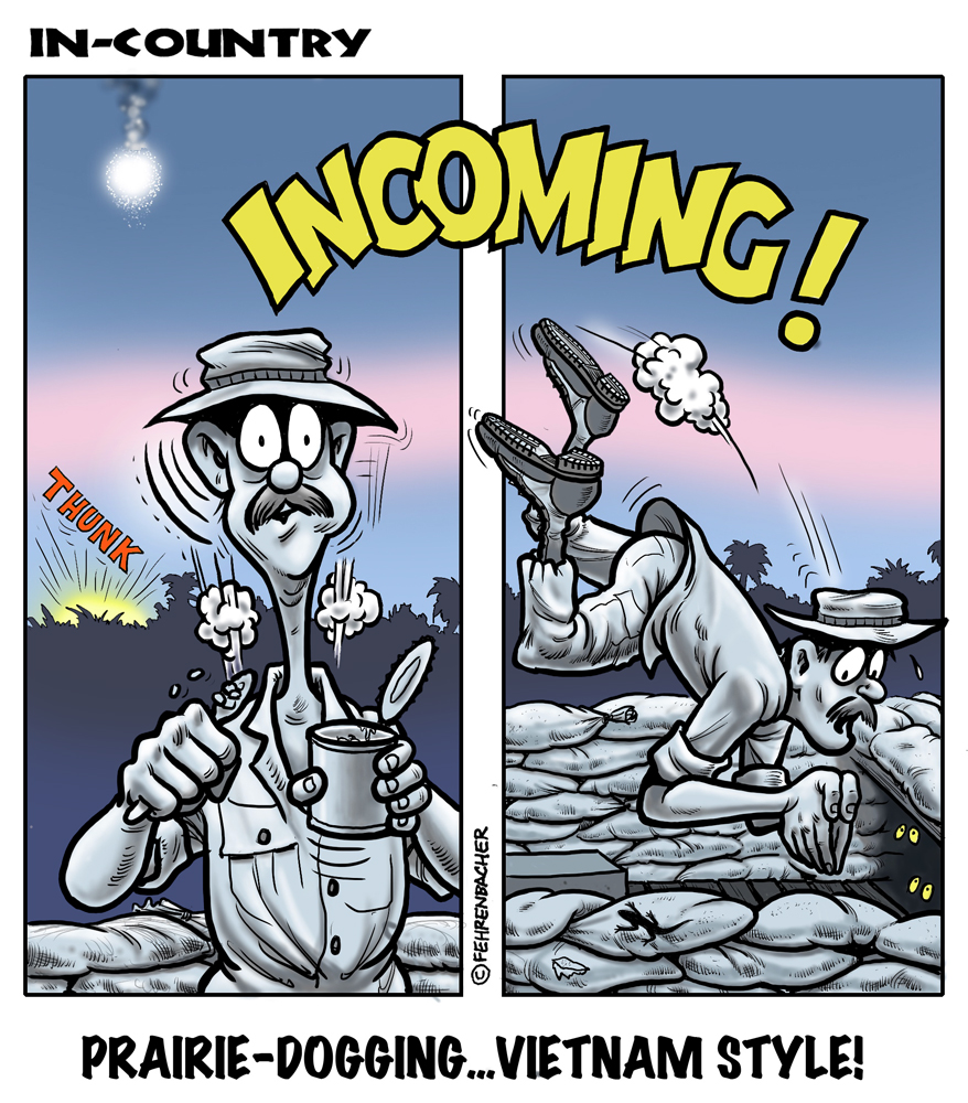 Phil enlisted in the Army in 1965 where you served for years in Vietnam. He became a graphic designer and has worked for the state of Oregon for 26 years. He retired in 2003 and started the Cartoon "In-Country". The cartoons reflect his experiences during his tour of duty in South Vietnam.