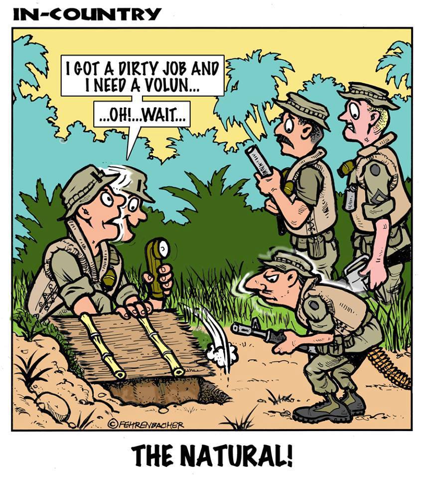 Phil enlisted in the Army in 1965 where he served for years in Vietnam. He became a graphic designer and has worked for the state of Oregon for 26 years. He retired in 2003 and started the Cartoon "In-Country". The cartoons reflect his experiences during his tour of duty in South Vietnam.